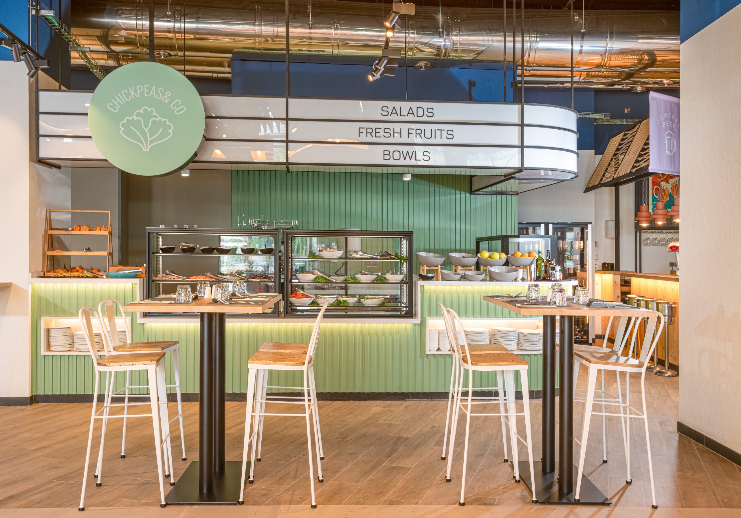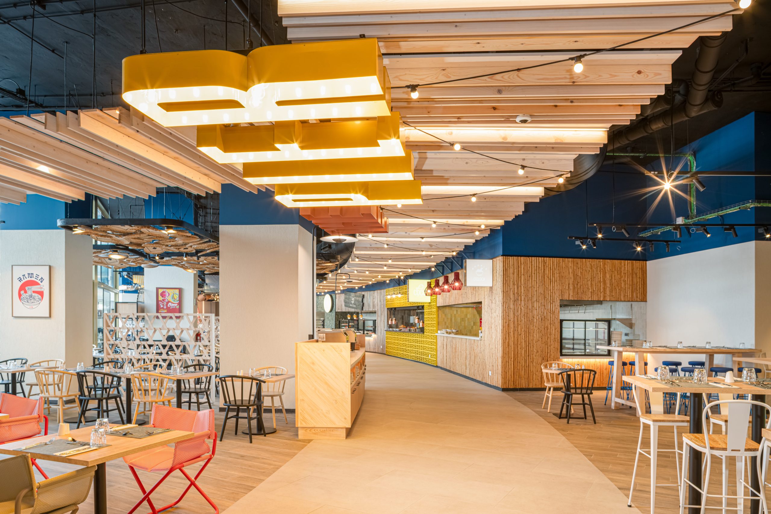 El variado y versátil food hall te ofrece una experiencia culinaria cosmopolita en un ambiente moderno y luminoso.